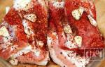 В полученный раствор окунаем мясо и отправляем в прохладное место на сутки. Чтобы после обработки дымом, туша получилась нежной и мягкой, во время мариновки все куски нужно периодически переворачивать, а сам рассол перемешивать.