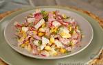 | Салат «С кукурузой и сыром» | Кукуруза консервированная, сыр твердый, яйца, майонез | Нежный, сладковатый, с кремовой текстурой |