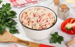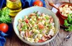 | Салат «С макаронами» | Макароны отварные, перец болгарский, огурцы свежие, зелень | Необычный, сытный, с интересной текстурой |